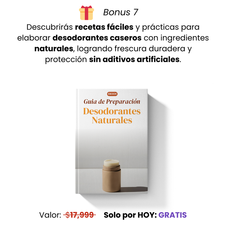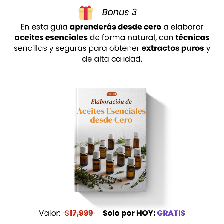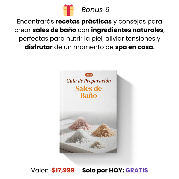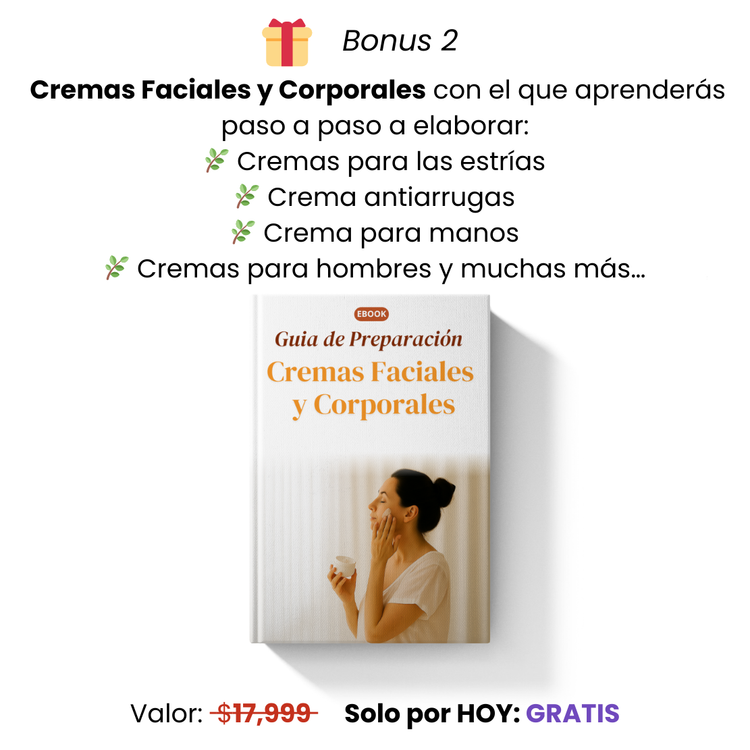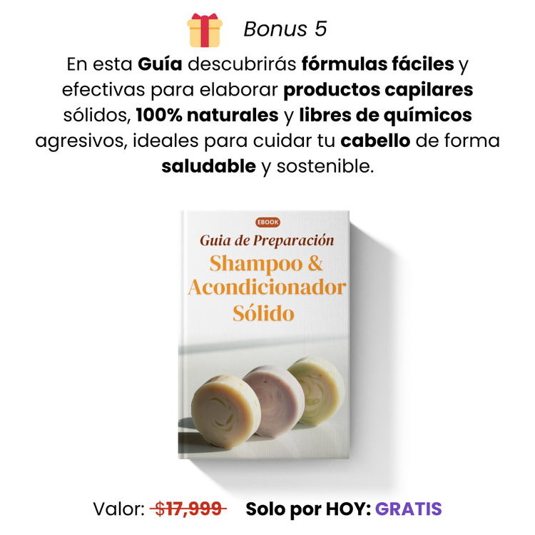 Recibís mucho más que un simple libro. Este es tu kit completo para arrancar un negocio de jabones ecologicos y naturales. Incluye recetas probadas, guías paso a paso para preparar y empezar a vender tus jabones rapidamente. Ah, y un bonus: ¡te damos un kit completo de cosmética natural para que amplies tu negocio y salud para tu familia!