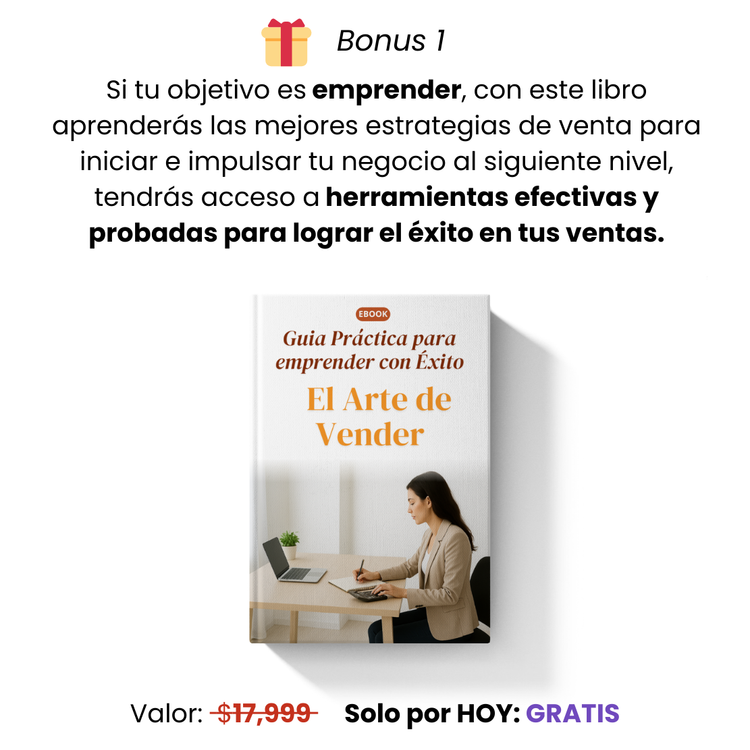 ¡El libro es tuyo para siempre! Apenas completes la compra, lo enviamos directo a tu correo electrónico. Podés descargarlo cuando quieras. Lo único que te pedimos es que no lo postergues... ¡el éxito espera a quienes actúan rápido!
