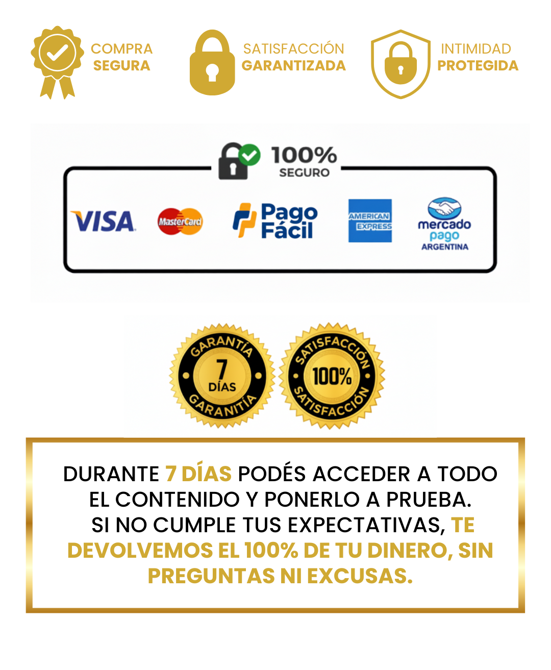 Sabemos que dar el primer paso hacia tu negocio puede asustar un poco, pero también sabemos que vale la pena. Por eso, te damos 7 días completos para probar, experimentar y enamorarte de El Gran Libro de los Jabones de Glicerina.