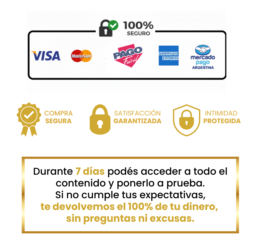 Sabemos que dar el primer paso hacia tu negocio puede asustar un poco, pero también sabemos que vale la pena. Por eso, te damos 7 días completos para probar, experimentar y enamorarte de Los Secretos de la Jabonera Emprendedora.